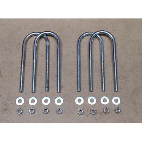 Extra long leaf-spring u-bolts (can be cut down to suit) with nylocs and washers